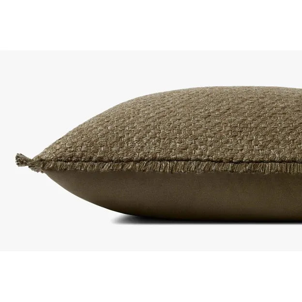 This 22" pillow features a down fill and is crafted from a machine-woven blend of cotton, polyester, and rayon. It is finished with a decorative fringe edge for added texture and style.
