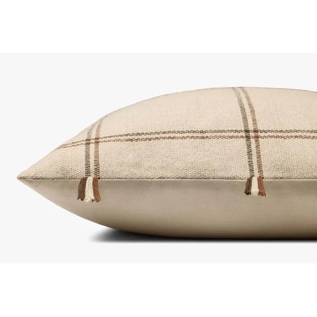 This 24" pillow features a down filling encased in hand-woven, 100% cotton fabric, finished with a delicate fringe edge for added texture and sophistication.