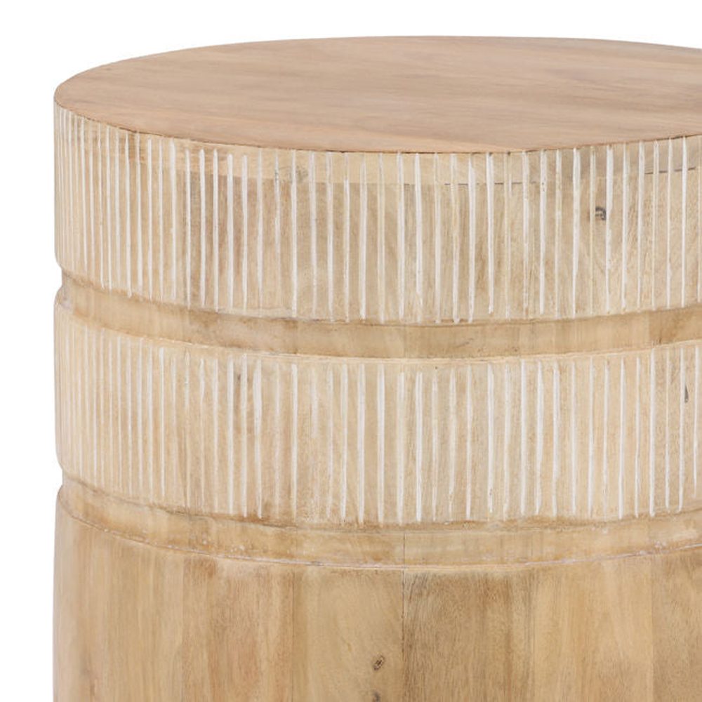 Crafted from mango wood, this round side table showcases etched detailing that adds visual interest and artisanal character.